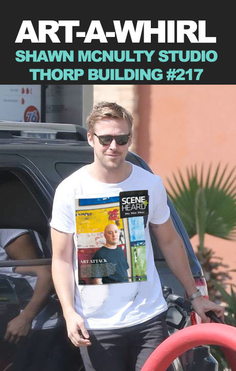 Ryan Gosling took a break from the Macaulay Culkin shirts and was spotted wearing a Shawn McNulty Art-A-Whirl shirt to promote the Minneapolis artists’s upcoming open studio event May 16-18 showcasing his large scale contemporary paintings. The baby goose actor is known for his devotion to the visual arts as well as eating cereal.