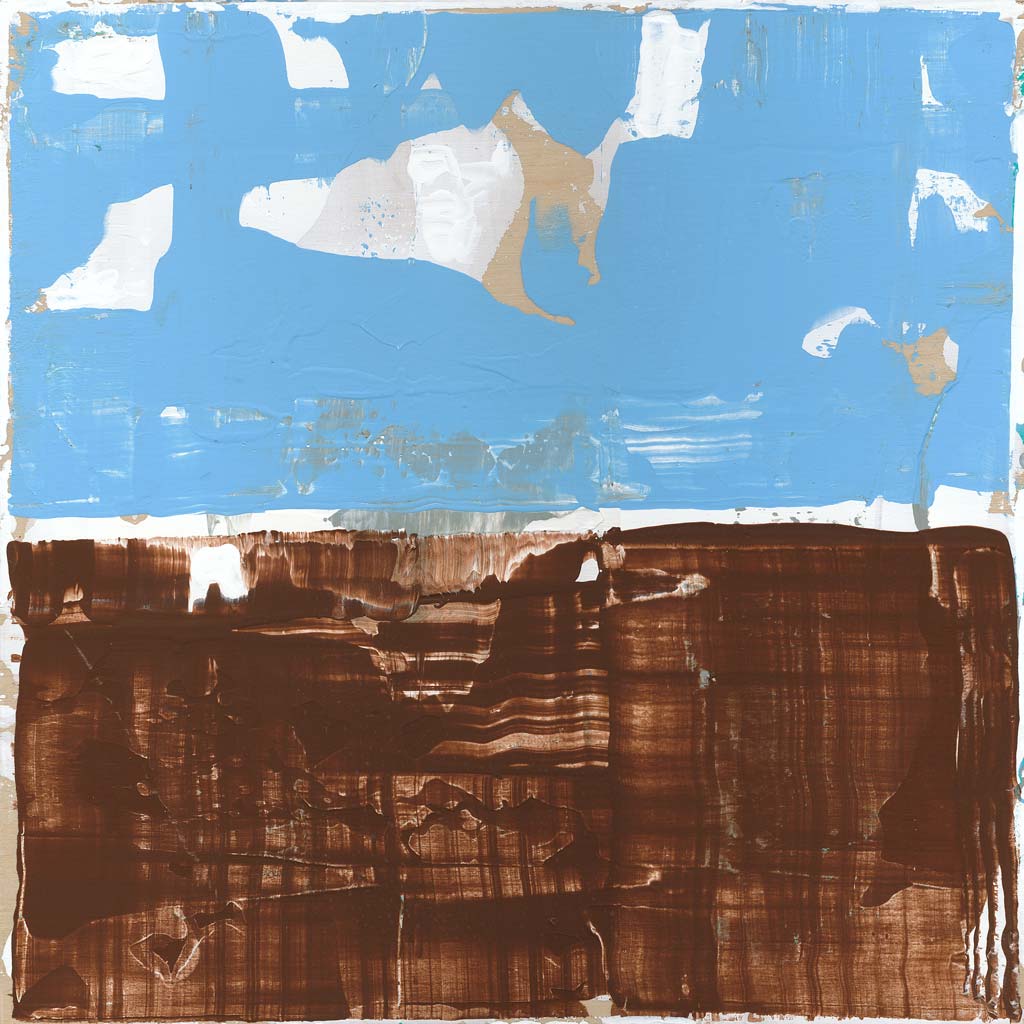 Fun Fact: This is a minimal abstract painting compared to most of my work. I only used brown, blue, and the white of the gesso. You can even see some of the wood grain coming through.