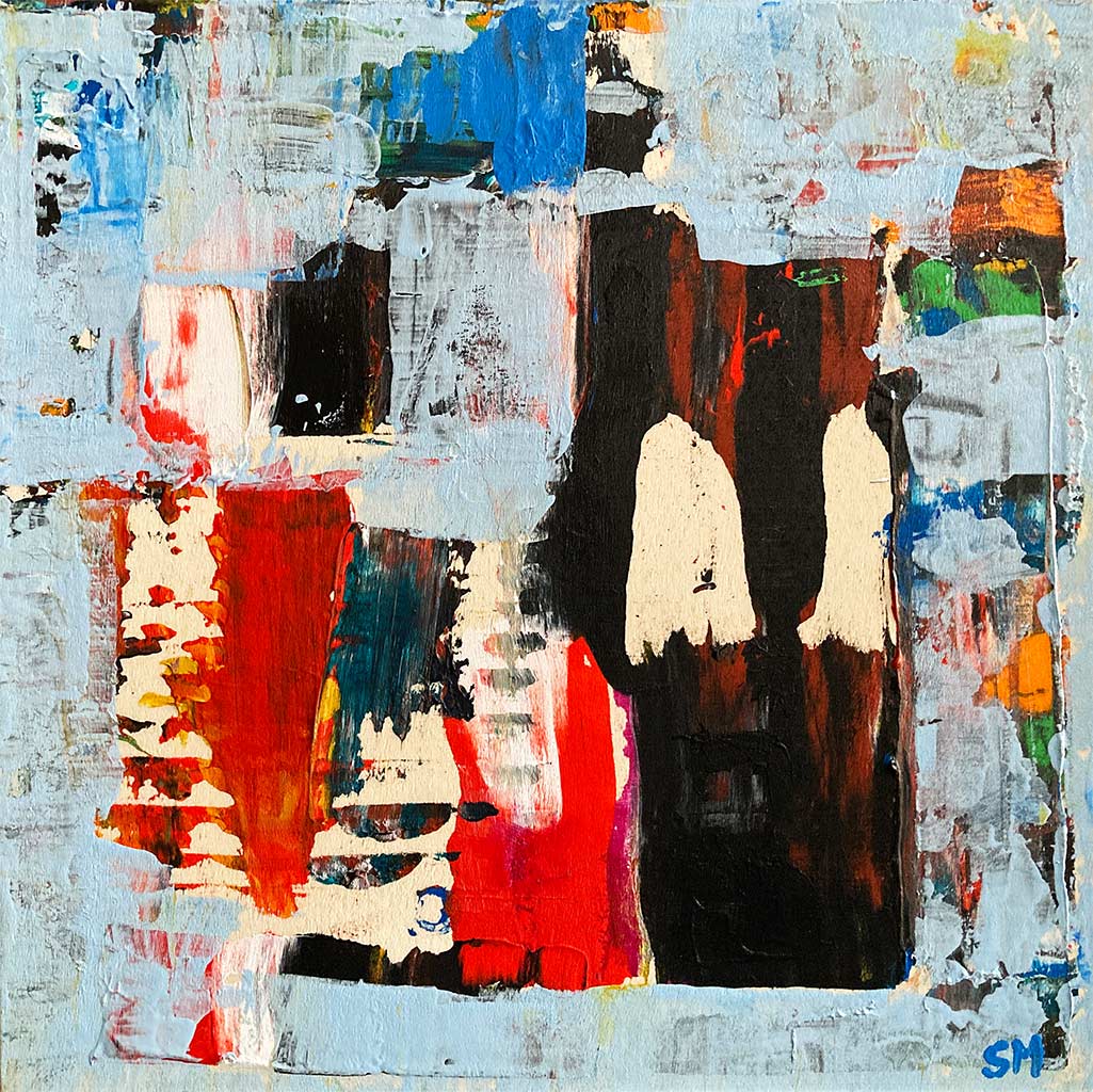 Zephyr is an original abstract painting on cradled board by visual artist Shawn McNulty. This painting is is 1″ deep with pine edges, and ready to hang with wire on the back.
